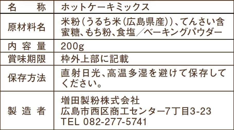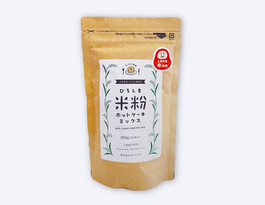 広島県三原市産米100%使用した小麦粉不使用(グルテンフリー)のホットケーキミックスです。